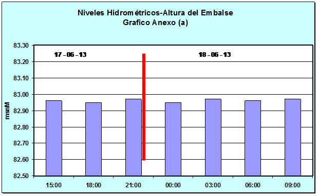 Nivel Día 17-06-13 06:00 hs, 82.97 msnM Nivel Día 18-06-13 06:00 hs, 82.97 msnM