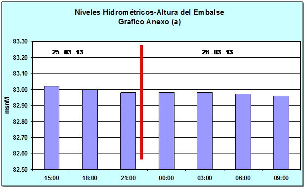 Nivel Día 25-03-13 03:00 hs, 82.99 msnM Nivel Día 26-03-13 03:00 hs, 82.98 msnM