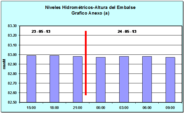 Nivel Día 23-05-13 03:00 hs, 82.99 msnM Nivel Día 24-05-13 03:00 hs, 82.98 msnM