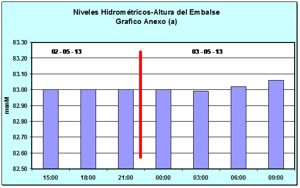 Nivel Día 02-05-13 03:00 hs, 83.01 msnM Nivel Día 03-05-13 03:00 hs, 82.99 msnM