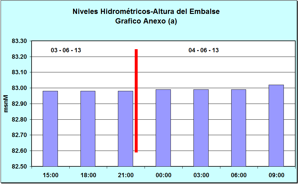 Nivel Día 03-06-13 03:00 hs, 82.97 msnM Nivel Día 04-06-13 03:00 hs, 82.99 msnM