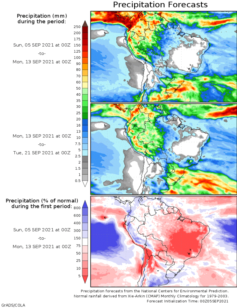 El pronóstico Hidrometeorológico del Centro Climático de referencia indica una tendencia semanal de poca significancia hidrológica en la cuenca de interés para la CHY con dispersión geográfica según sea la fuente consultada. (Ver gráfico Nro. 1).