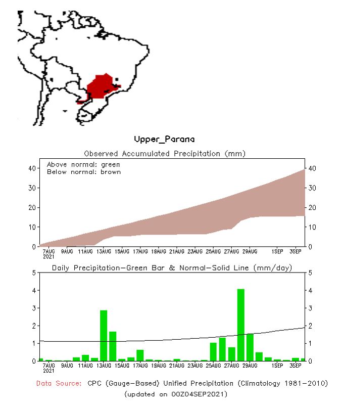 Los embalses de acumulación del Brasil que se ubican en la cuenca alta del río Paraná, aguas arriba de la Central Hidroeléctrica de Yacyretá, se encuentran con volúmenes útiles y niveles muy por debajo de lo normal debido a las escasas precipitaciones registradas.