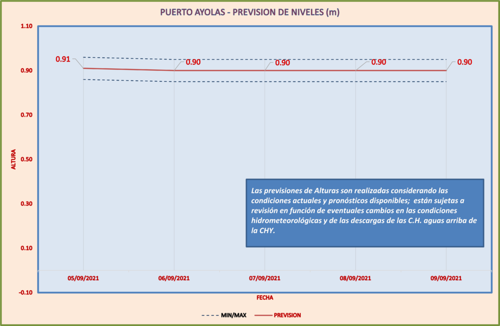 Las previsiones de Alturas son realizadas considerando las condiciones actuales y pronósticos disponibles y están sujetas a revisión en función de eventuales cambios en las condiciones hidrometeorológicas y de las descargas de las C.H. aguas arriba de la CHY.