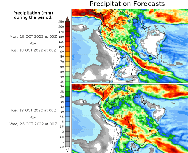 El pronóstico Hidrometeorológico del Centro Climático de referencia indica una tendencia semanal de significancia hidrológica en la cuenca de interés para la CHY con dispersión geográfica según sea la fuente consultada. (Ver gráfico Nro. 1).
