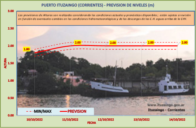 Las previsiones de Alturas son realizadas considerando las condiciones actuales y pronósticos disponibles y están sujetas a revisión en función de eventuales cambios en las condiciones hidrometeorológicas y de las descargas de las C.H. aguas arriba de la CHY.