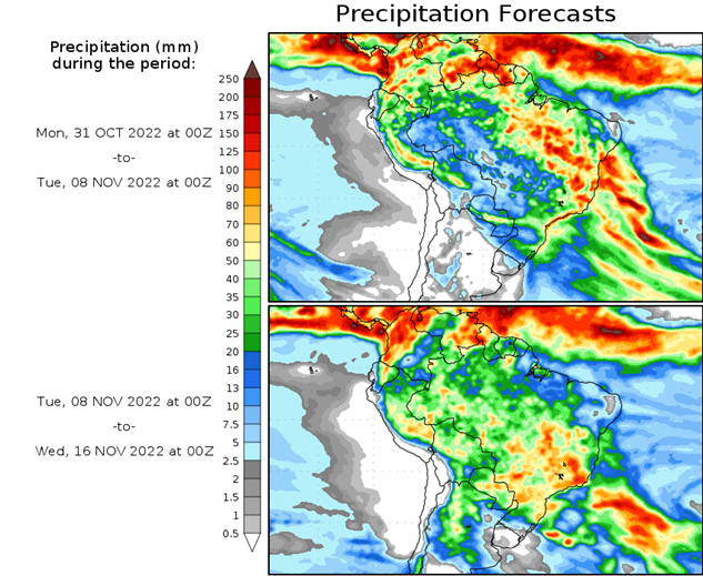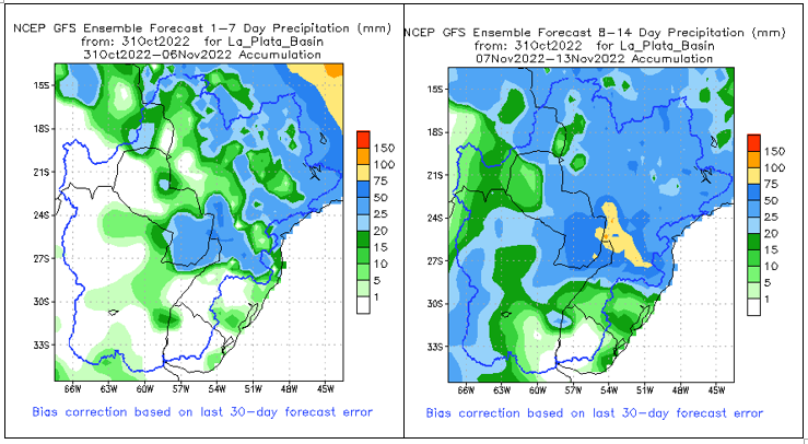 El pronóstico Hidrometeorológico del Centro Climático de referencia indica una tendencia semanal de significancia hidrológica en la cuenca de interés para la CHY con dispersión geográfica según sea la fuente consultada. (Ver gráfico Nro. 1).
