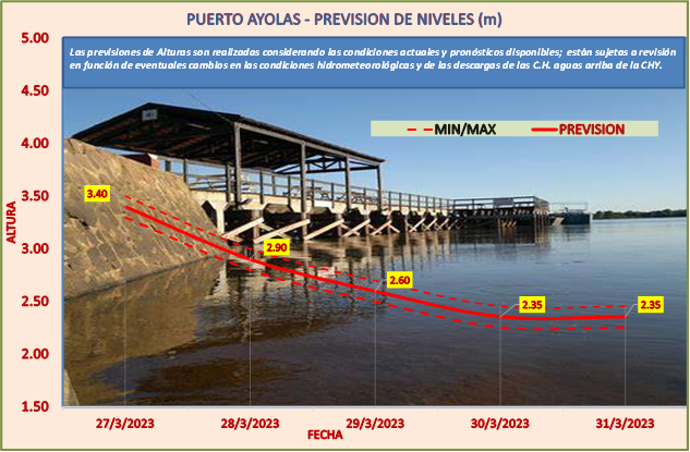Las previsiones de Alturas son realizadas considerando las condiciones actuales y pronósticos disponibles y están sujetas a revisión en función de eventuales cambios en las condiciones hidrometeorológicas y de las descargas de las C.H. aguas arriba de la CHY.