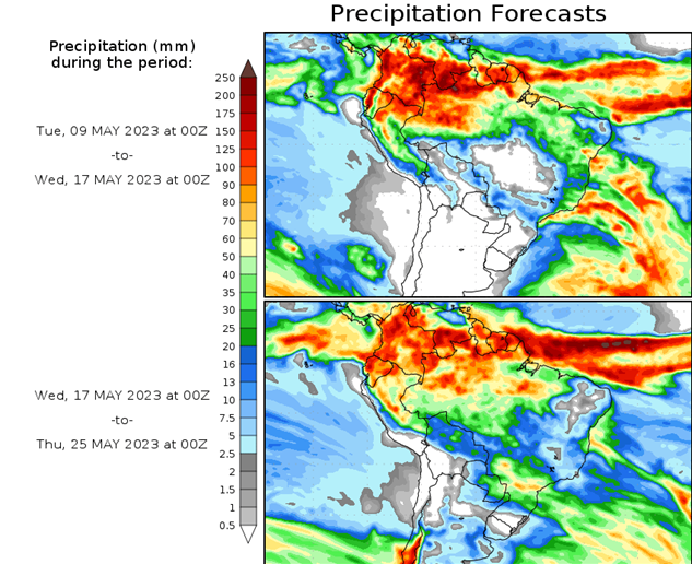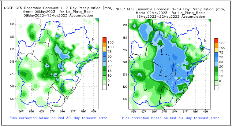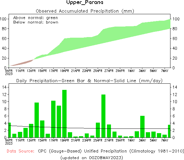 El pronóstico Hidrometeorológico del Centro Climático de referencia indica una tendencia semanal de leve significancia hidrológica en la cuenca de interés para la CHY con dispersión geográfica según sea la fuente consultada. (Ver gráfico Nro. 1).