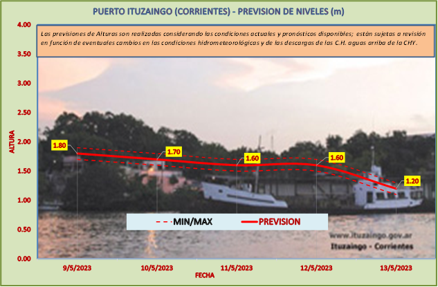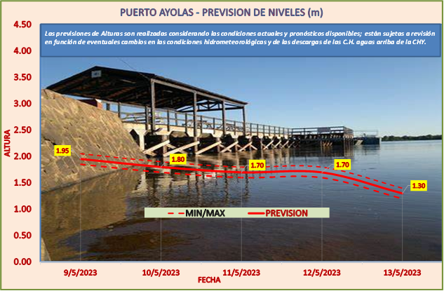 Las previsiones de Alturas son realizadas considerando las condiciones actuales y pronósticos disponibles y están sujetas a revisión en función de eventuales cambios en las condiciones hidrometeorológicas y de las descargas de las C.H. aguas arriba de la CHY.