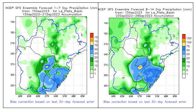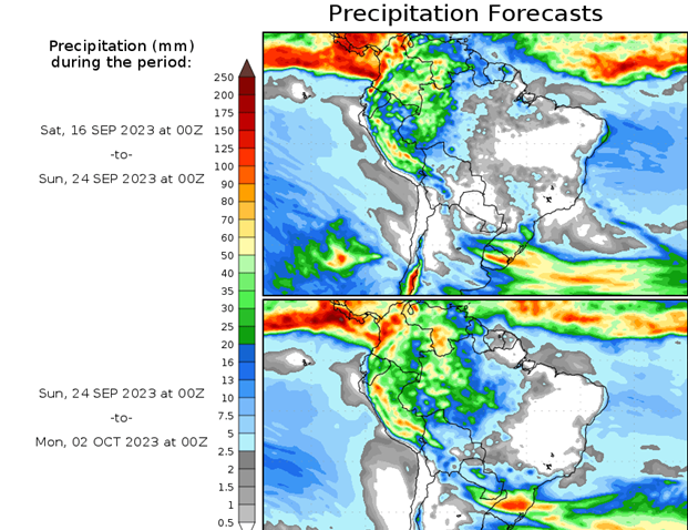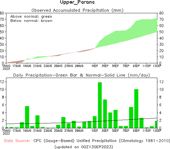 El pronóstico Hidrometeorológico del Centro Climático de referencia indica una tendencia semanal de leve significancia hidrológica en la cuenca de interés para la CHY con dispersión geográfica según sea la fuente consultada. (Ver gráfico Nro. 1).