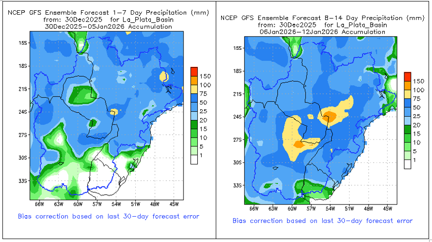 El pronóstico Hidrometeorológico del Centro Climático de referencia indica una tendencia semanal de leve significancia hidrológica en la cuenca de interés para la CHY con dispersión geográfica según sea la fuente consultada. (Ver gráfico Nro. 1).