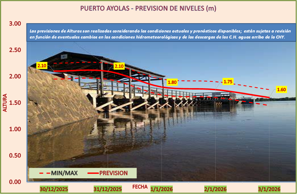 Las previsiones de Alturas son realizadas considerando las condiciones actuales y pronósticos disponibles y están sujetas a revisión en función de eventuales cambios en las condiciones hidrometeorológicas y de las descargas de las C.H. aguas arriba de la CHY.