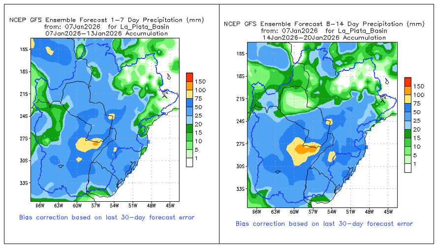 • El índice del Modo Anular Sur (SAM) se mantiene neutral al 20 de diciembre de 2025. Se prevé que se mantenga neutral durante la próxima semana. Posteriormente, se observa una ligera tendencia hacia valores negativos durante las dos semanas siguientes. Sin embargo, existen diversos resultados posibles, lo que implica una menor claridad en la fase del SAM más allá de la próxima semana.