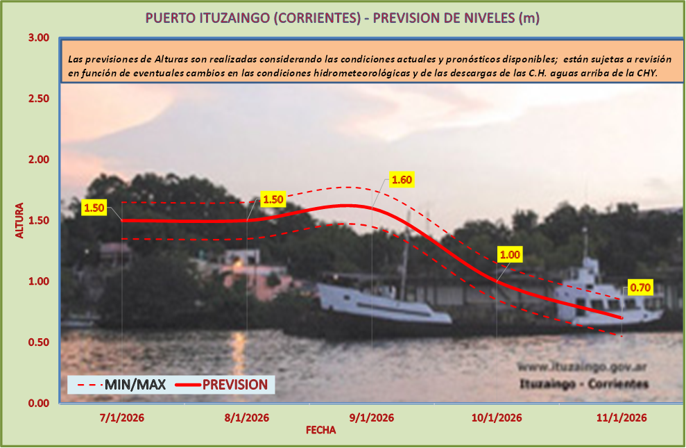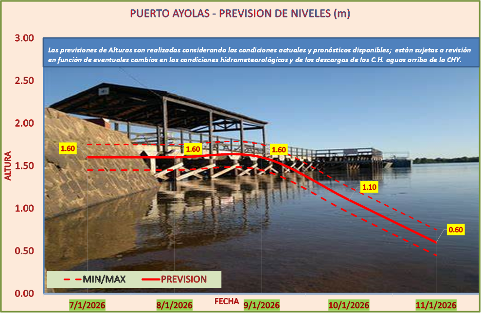 Las previsiones de Alturas son realizadas considerando las condiciones actuales y pronósticos disponibles y están sujetas a revisión en función de eventuales cambios en las condiciones hidrometeorológicas y de las descargas de las C.H. aguas arriba de la CHY.