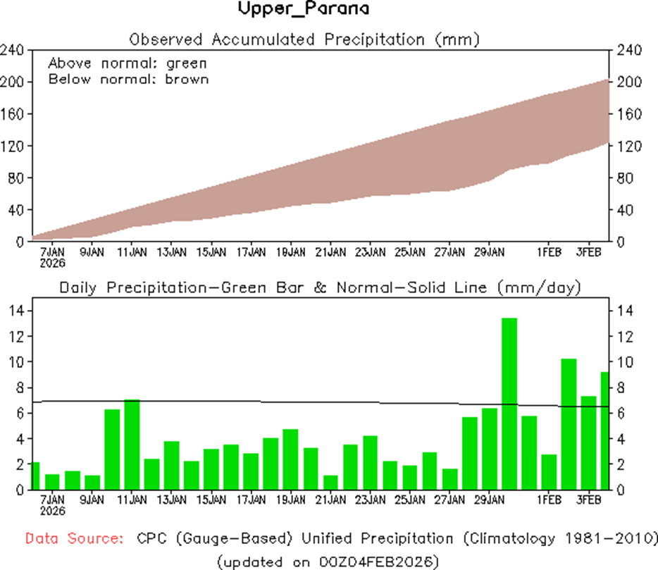 • La Niña continúa en el Pacífico tropical. El último valor relativo del índice de temperatura superficial del mar (TSM) Niño3.4 para la semana que finalizó el 18 de enero de 2026 es de -0,91 °C, consistente con La Niña (por debajo de -0,8 °C). Sin embargo, el reciente calentamiento subsuperficial podría indicar las primeras etapas de la disminución de La Niña.