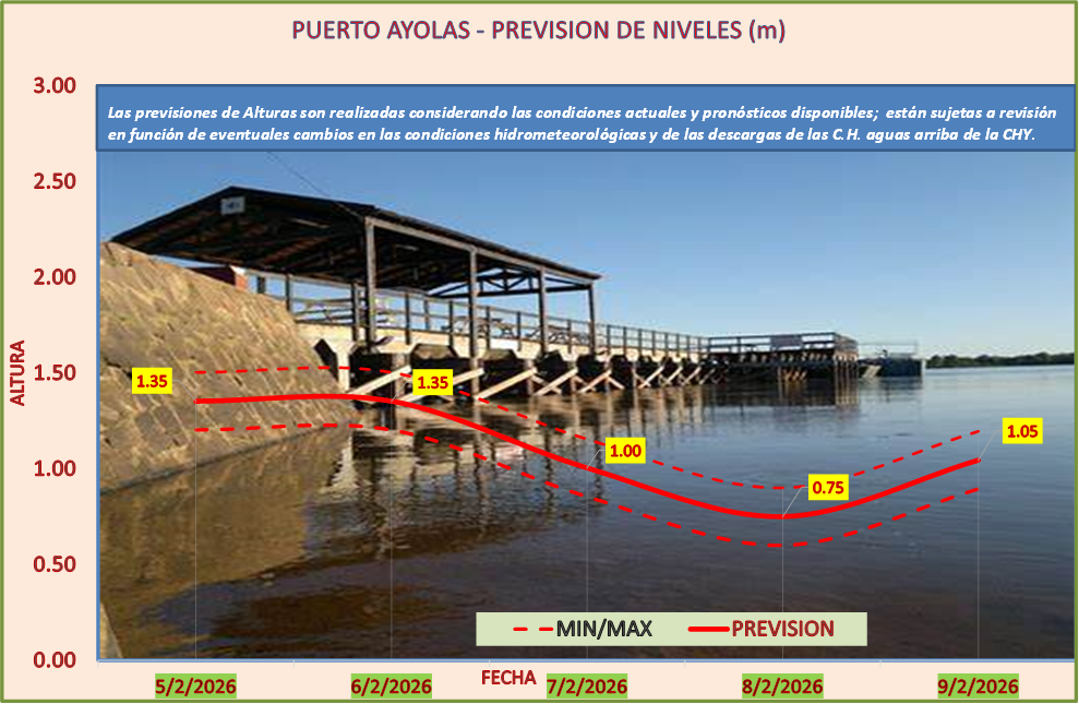Las previsiones de Alturas son realizadas considerando las condiciones actuales y pronósticos disponibles y están sujetas a revisión en función de eventuales cambios en las condiciones hidrometeorológicas y de las descargas de las C.H. aguas arriba de la CHY.