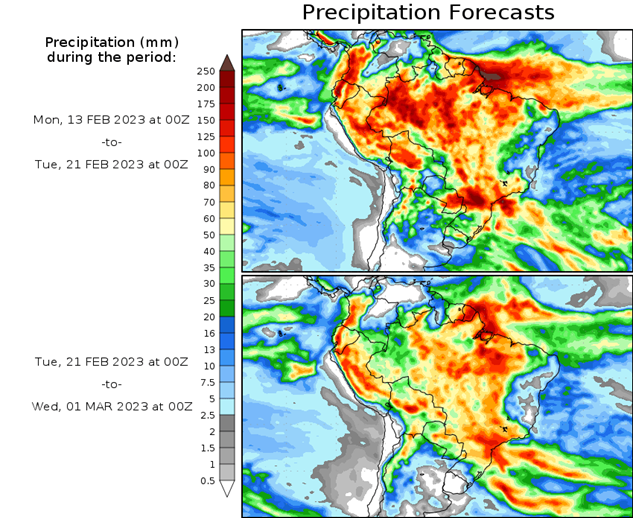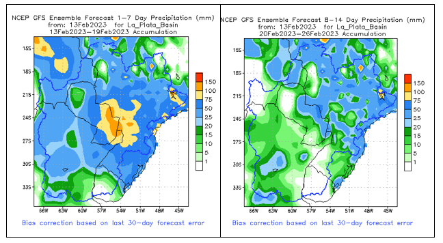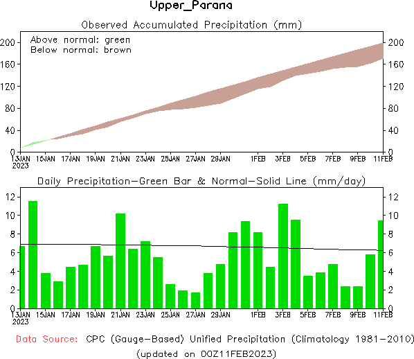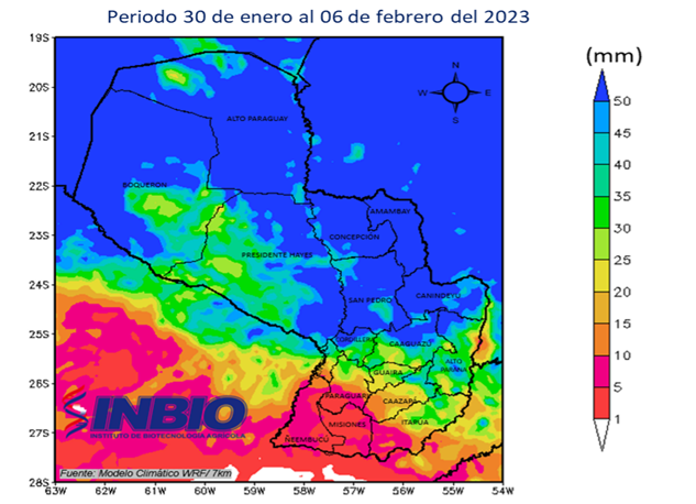 El pronóstico Hidrometeorológico del Centro Climático de referencia indica una tendencia semanal de poca significancia hidrológica en la cuenca de interés para la CHY con dispersión geográfica según sea la fuente consultada. (Ver gráfico Nro. 1).