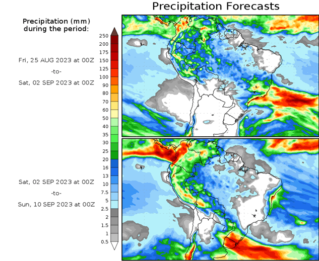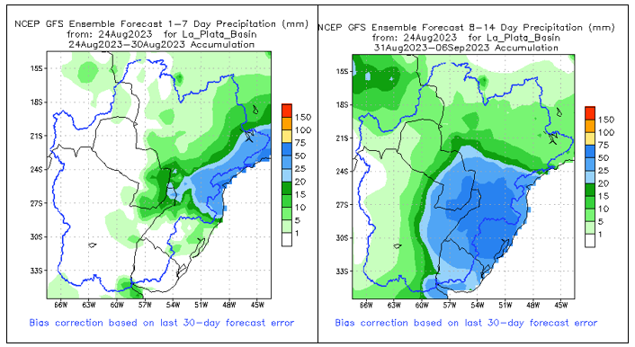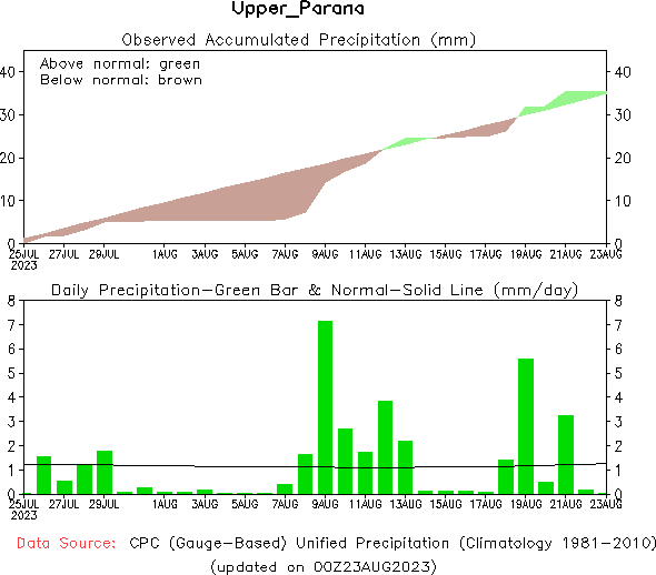 El pronóstico Hidrometeorológico del Centro Climático de referencia indica una tendencia semanal de poca significancia hidrológica en la cuenca de interés para la CHY con dispersión geográfica según sea la fuente consultada. (Ver gráfico Nro. 1).