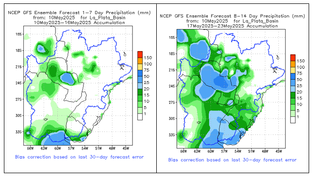 El pronóstico Hidrometeorológico del Centro Climático de referencia indica una tendencia semanal de poca significancia hidrológica en la cuenca de interés para la CHY con dispersión geográfica según sea la fuente consultada. (Ver gráfico Nro. 1).