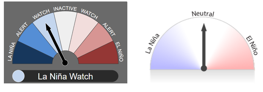 El modelo de la Oficina predice un ENSO neutral (ni El Niño ni La Niña) hasta al menos noviembre. Esto coincide con los pronósticos de 7 de los 8 modelos internacionales. Sin embargo, la dispersión en los pronósticos de los modelos es mayor hacia el final del período de pronóstico, lo que indica una mayor incertidumbre hacia el final de la primavera.