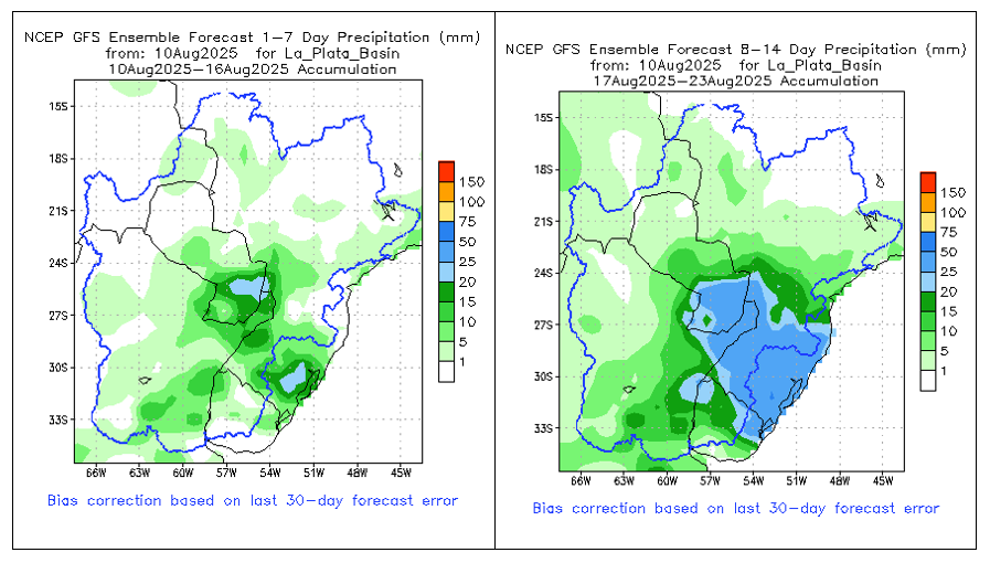 El pronóstico Hidrometeorológico del Centro Climático de referencia indica una tendencia semanal de poca significancia hidrológica en la cuenca de interés para la CHY con dispersión geográfica según sea la fuente consultada. (Ver gráfico Nro. 1).