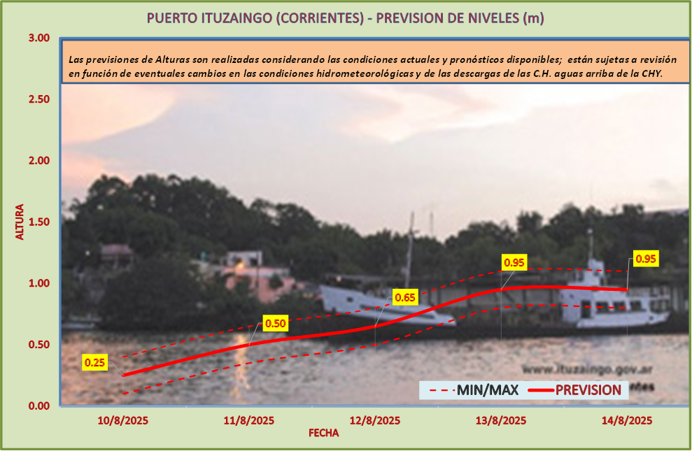 Las previsiones de Alturas son realizadas considerando las condiciones actuales y pronósticos disponibles y están sujetas a revisión en función de eventuales cambios en las condiciones hidrometeorológicas y de las descargas de las C.H. aguas arriba de la CHY.