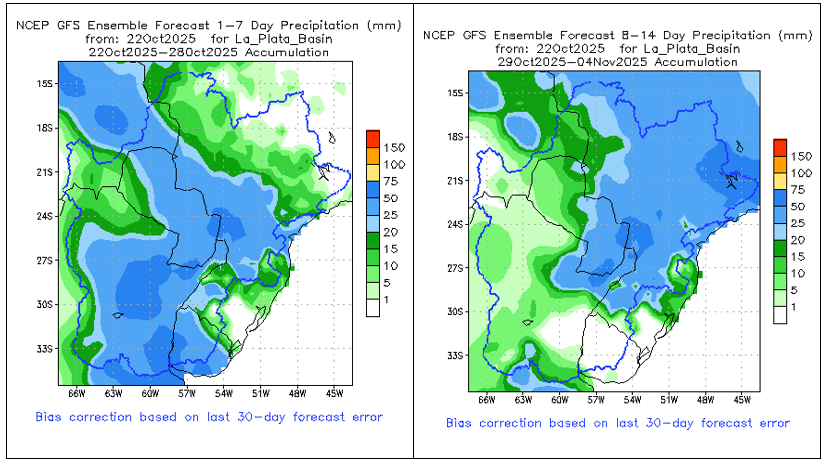 El pronóstico Hidrometeorológico del Centro Climático de referencia indica una tendencia semanal de poca significancia hidrológica en la cuenca de interés para la CHY con dispersión geográfica según sea la fuente consultada. (Ver gráfico Nro. 1).