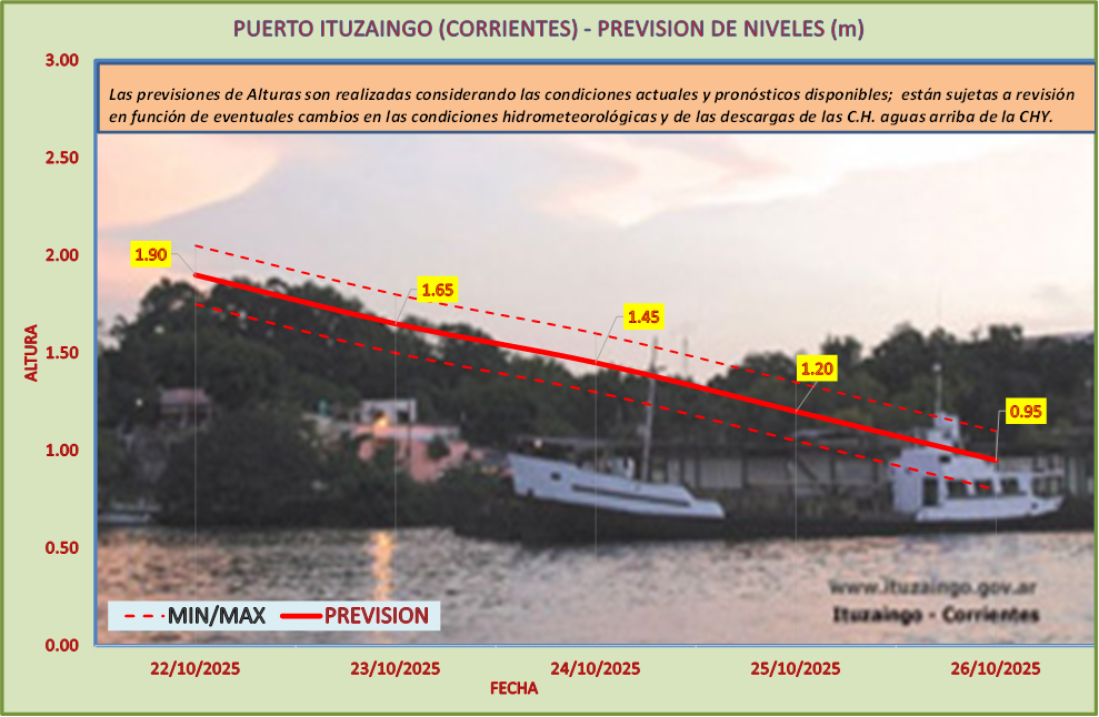 Las previsiones de Alturas son realizadas considerando las condiciones actuales y pronósticos disponibles y están sujetas a revisión en función de eventuales cambios en las condiciones hidrometeorológicas y de las descargas de las C.H. aguas arriba de la CHY.