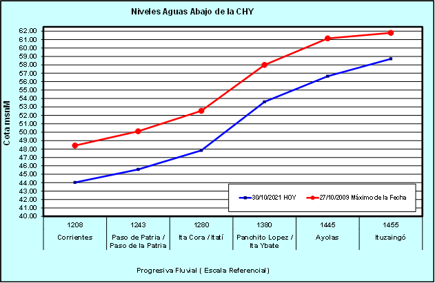 REFERENCIA: a modo de información – valores que originan riesgos de inundación en la zona de Ayolas.