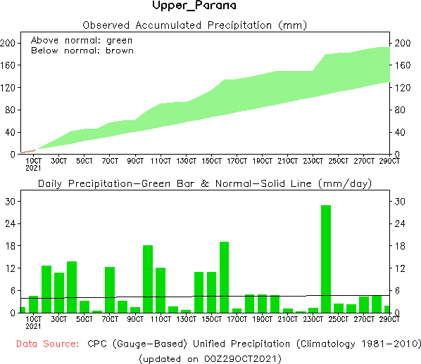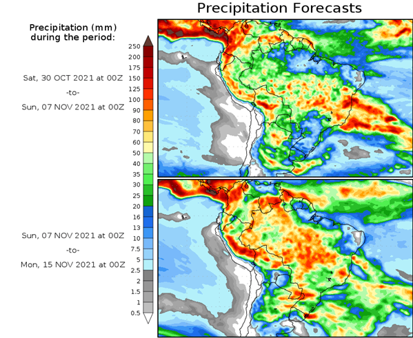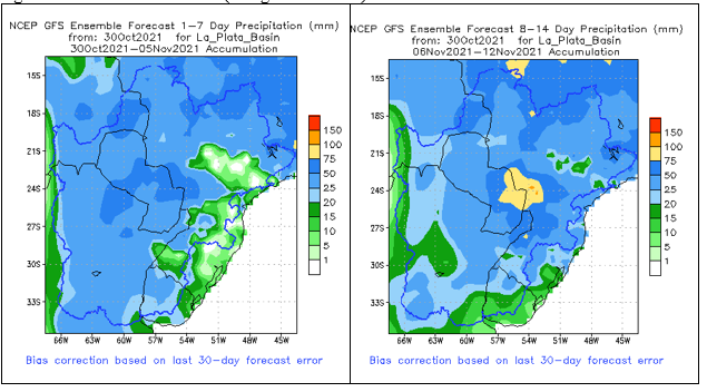 El pronóstico Hidrometeorológico del Centro Climático de referencia indica una tendencia semanal de poca significancia hidrológica en la cuenca de interés para la CHY con dispersión geográfica según sea la fuente consultada. (Ver gráfico Nro. 1).