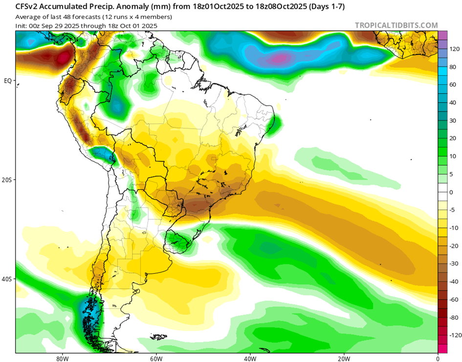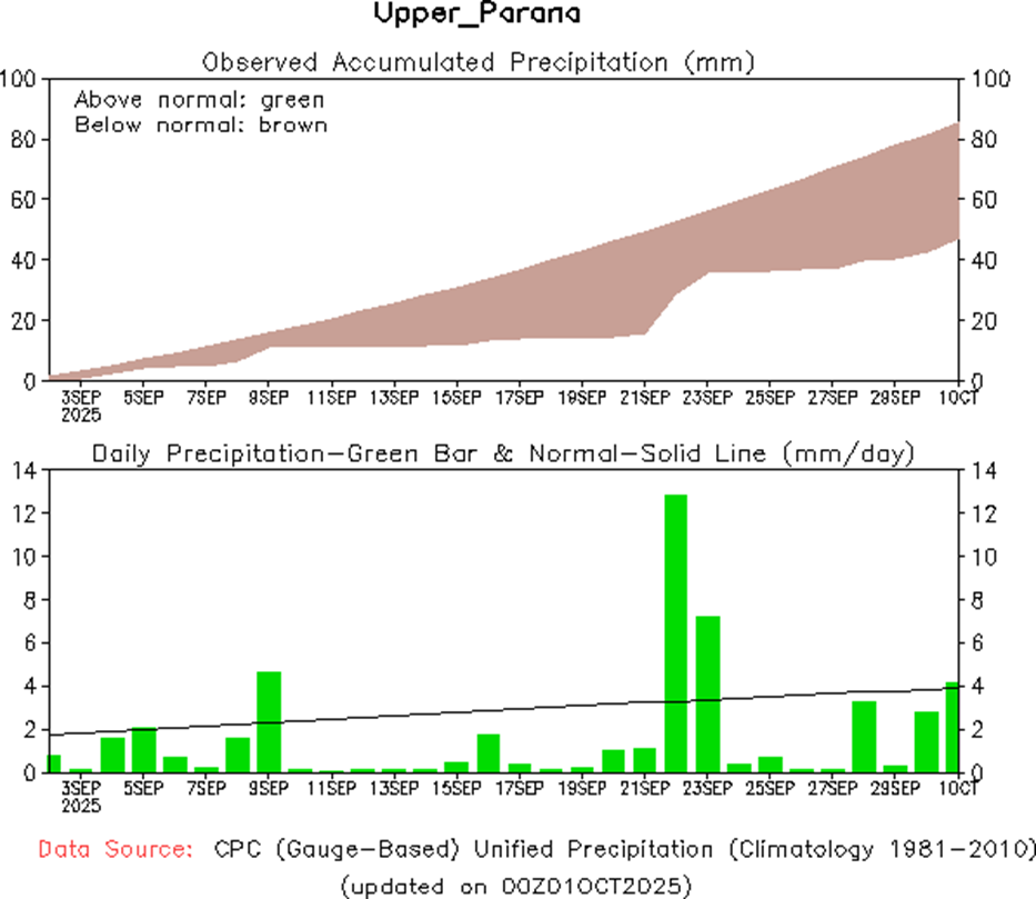 El fenómeno de El Niño-Oscilación del Sur (ENOS) se mantiene neutral. El último valor de Niño3.4 para la semana que finalizó el 24 de agosto es de -0,28 °C. Los valores neutrales de ENOS para Niño3.4 se encuentran entre -0,8 °C y +0,8 °C. Si bien las aguas subsuperficiales del Pacífico tropical han mostrado signos de enfriamiento en las últimas semanas, los indicadores atmosféricos se mantienen mayormente neutrales.