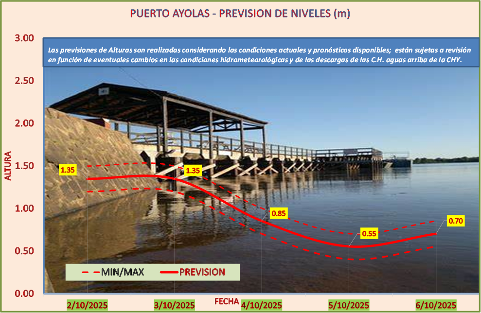 Las previsiones de Alturas son realizadas considerando las condiciones actuales y pronósticos disponibles y están sujetas a revisión en función de eventuales cambios en las condiciones hidrometeorológicas y de las descargas de las C.H. aguas arriba de la CHY.