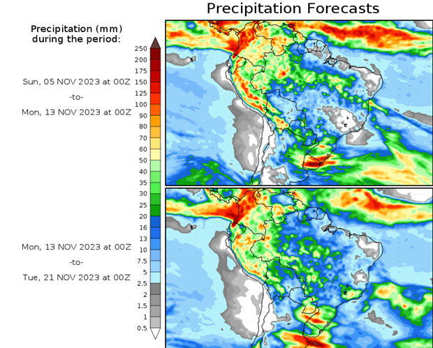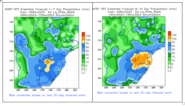 El pronóstico Hidrometeorológico del Centro Climático de referencia indica una tendencia semanal de significancia hidrológica en la cuenca de interés para la CHY con dispersión geográfica según sea la fuente consultada. (Ver gráfico Nro. 1).