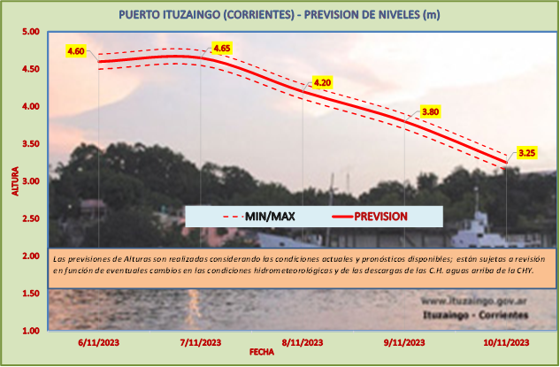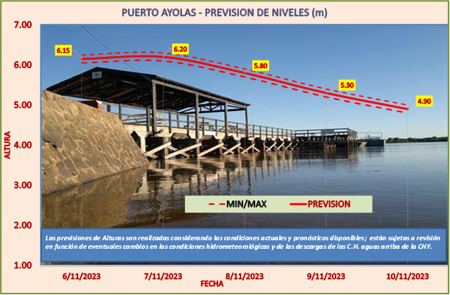 Las previsiones de Alturas son realizadas considerando las condiciones actuales y pronósticos disponibles y están sujetas a revisión en función de eventuales cambios en las condiciones hidrometeorológicas y de las descargas de las C.H. aguas arriba de la CHY.