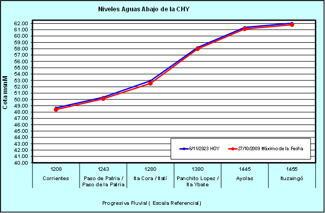 REFERENCIA: a modo de información – valores que originan riesgos de inundación en la zona de Ayolas.