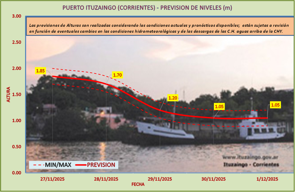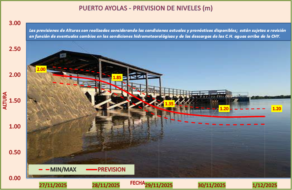 Las previsiones de Alturas son realizadas considerando las condiciones actuales y pronósticos disponibles y están sujetas a revisión en función de eventuales cambios en las condiciones hidrometeorológicas y de las descargas de las C.H. aguas arriba de la CHY.