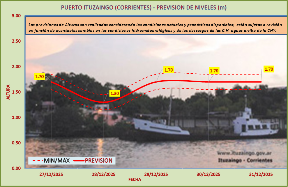 Las previsiones de Alturas son realizadas considerando las condiciones actuales y pronósticos disponibles y están sujetas a revisión en función de eventuales cambios en las condiciones hidrometeorológicas y de las descargas de las C.H. aguas arriba de la CHY.