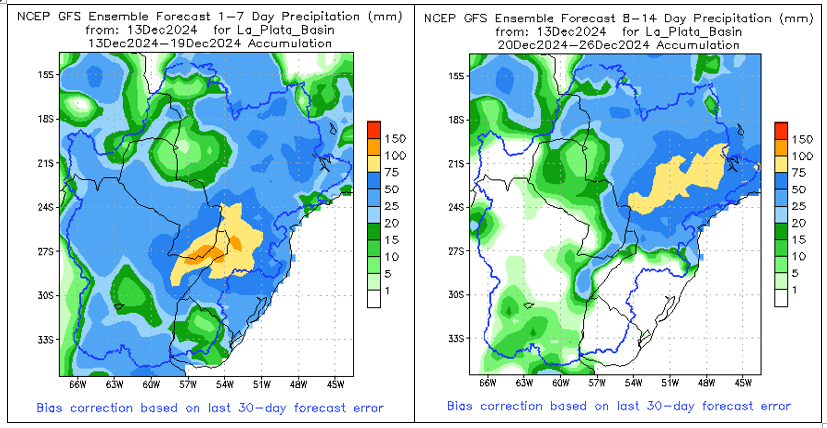 El pronóstico Hidrometeorológico del Centro Climático de referencia indica una tendencia semanal de significancia hidrológica en la cuenca de interés para la CHY con dispersión geográfica según sea la fuente consultada. (Ver gráfico Nro. 1).