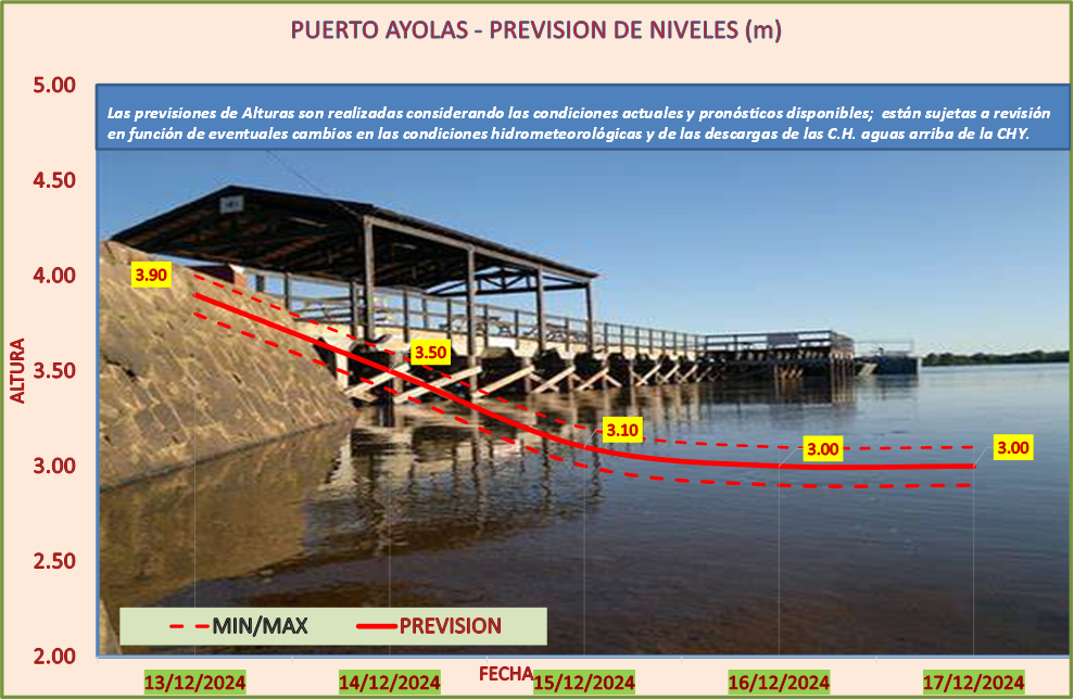 Las previsiones de Alturas son realizadas considerando las condiciones actuales y pronósticos disponibles y están sujetas a revisión en función de eventuales cambios en las condiciones hidrometeorológicas y de las descargas de las C.H. aguas arriba de la CHY.
