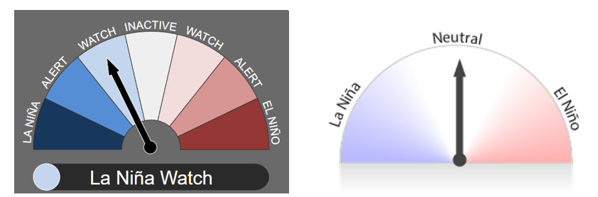 El fenómeno de El Niño-Oscilación del Sur (ENSO) es neutro, y tanto las temperaturas superficiales del mar (TSM) en el Océano Pacífico ecuatorial central como los patrones atmosféricos se encuentran en niveles neutros respecto de El Niño. Los índices atmosféricos, como los relacionados con los patrones de presión superficial, nubes y vientos alisios, son en general consistentes con un estado neutro respecto de El Niño. Aunque algunos han mostrado señales similares a las de La Niña durante las últimas semanas, estas señales no han sido consistentes.