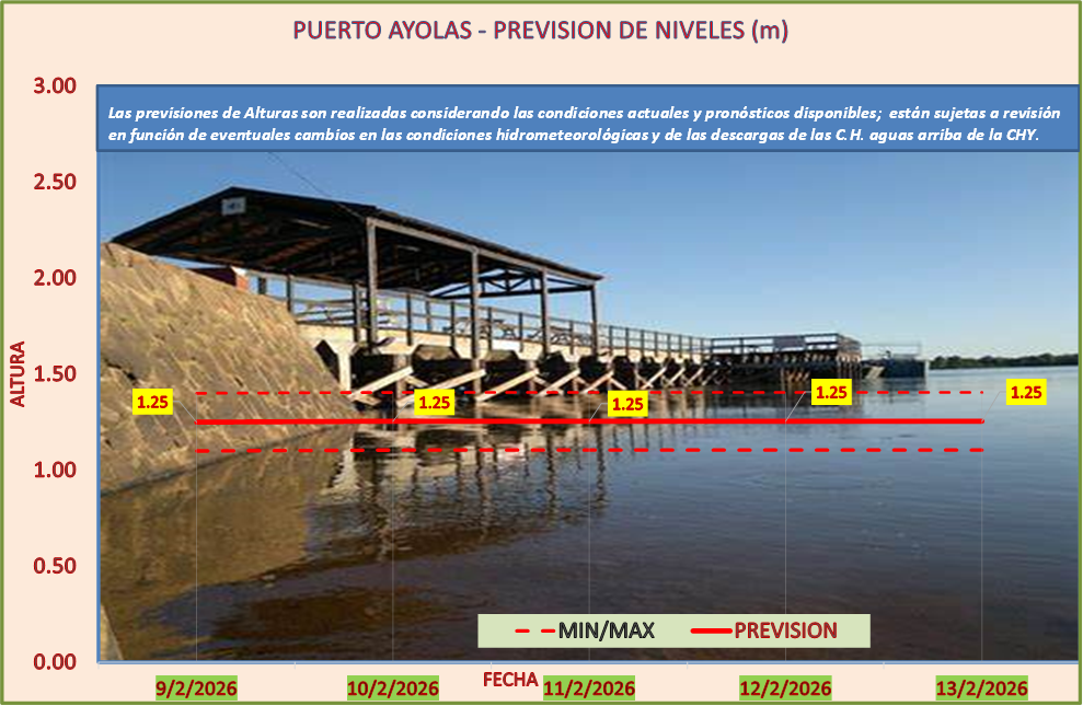 Las previsiones de Alturas son realizadas considerando las condiciones actuales y pronósticos disponibles y están sujetas a revisión en función de eventuales cambios en las condiciones hidrometeorológicas y de las descargas de las C.H. aguas arriba de la CHY.