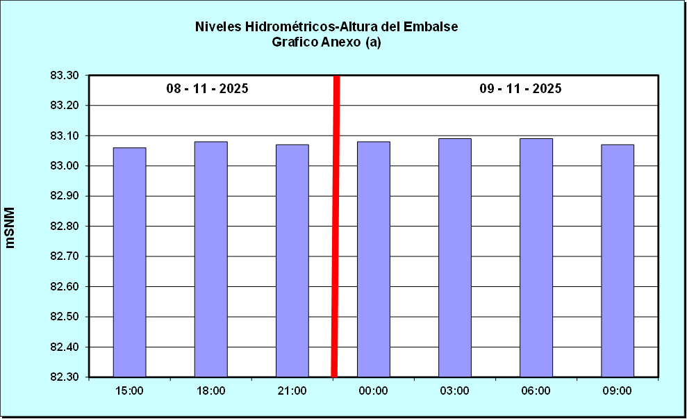 Nivel de Ayer (06:00 hs) = 83.04 mSNM Nivel de Hoy (06:00 hs) = 83.09 mSNM