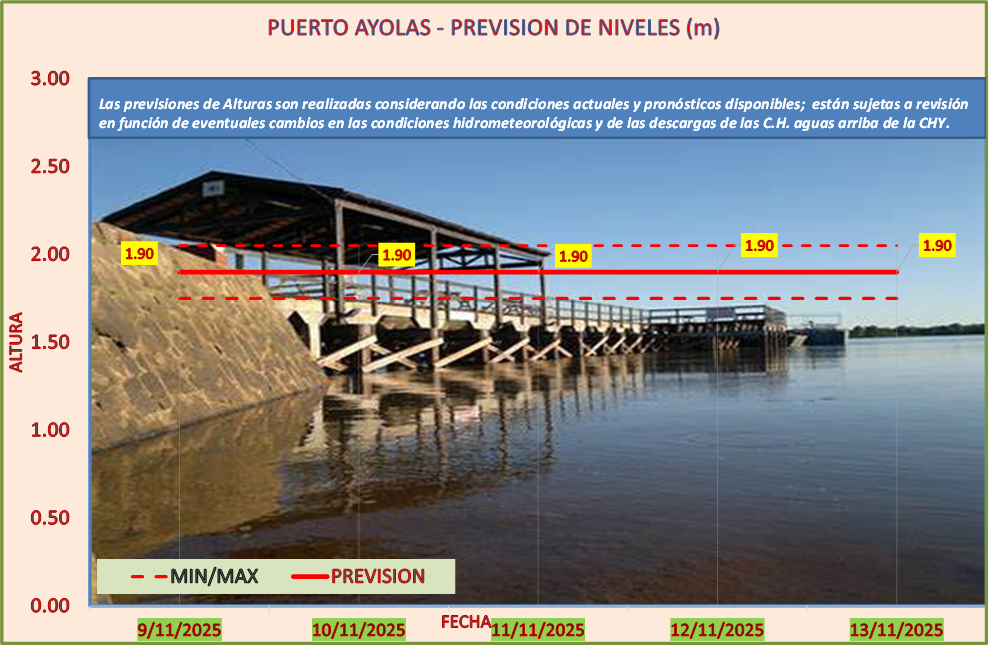 Las previsiones de Alturas son realizadas considerando las condiciones actuales y pronósticos disponibles y están sujetas a revisión en función de eventuales cambios en las condiciones hidrometeorológicas y de las descargas de las C.H. aguas arriba de la CHY.