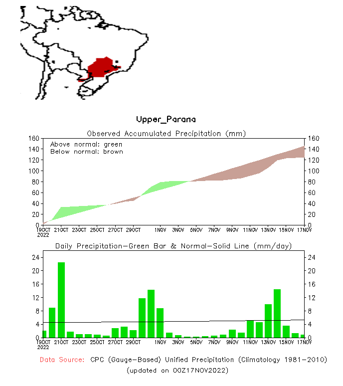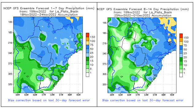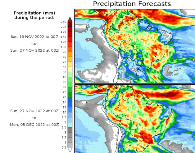 El pronóstico Hidrometeorológico del Centro Climático de referencia indica una tendencia semanal de poca significancia hidrológica en la cuenca de interés para la CHY con dispersión geográfica según sea la fuente consultada. (Ver gráfico Nro. 1).
