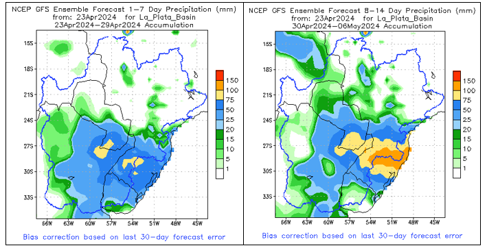 El pronóstico Hidrometeorológico del Centro Climático de referencia indica una tendencia semanal de leve significancia hidrológica en la cuenca de interés para la CHY con dispersión geográfica según sea la fuente consultada. (Ver gráfico Nro. 1).