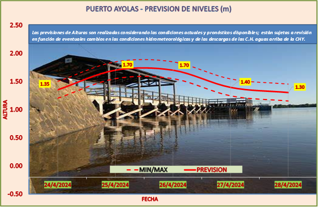 Las previsiones de Alturas son realizadas considerando las condiciones actuales y pronósticos disponibles y están sujetas a revisión en función de eventuales cambios en las condiciones hidrometeorológicas y de las descargas de las C.H. aguas arriba de la CHY.