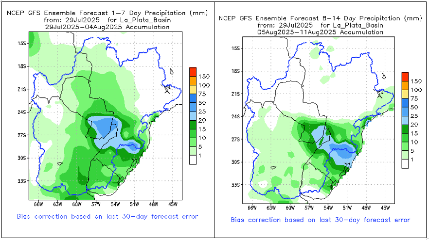 El pronóstico Hidrometeorológico del Centro Climático de referencia indica una tendencia semanal de poca significancia hidrológica en la cuenca de interés para la CHY con dispersión geográfica según sea la fuente consultada. (Ver gráfico Nro. 1).