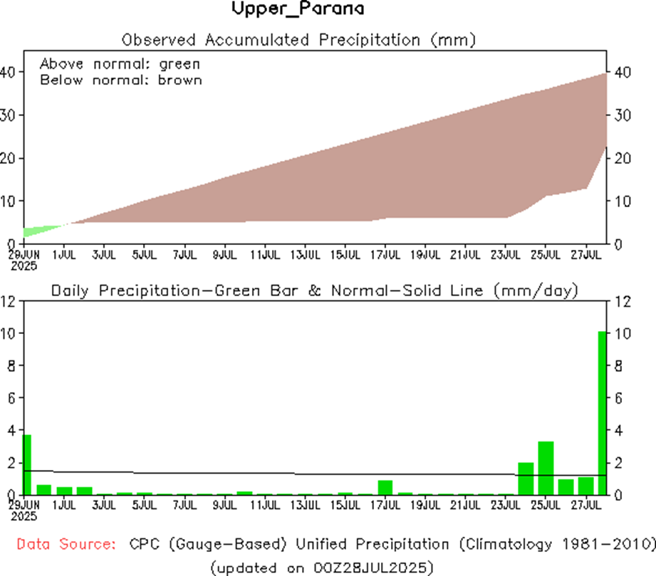 El fenómeno de El Niño-Oscilación del Sur (ENOS) es neutro. El último valor de Niño 3.4 para la semana que finalizó el 8 de junio fue de -0,07 °C. Los valores neutros de ENOS se encuentran entre -0,8 °C y +0,8 °C.