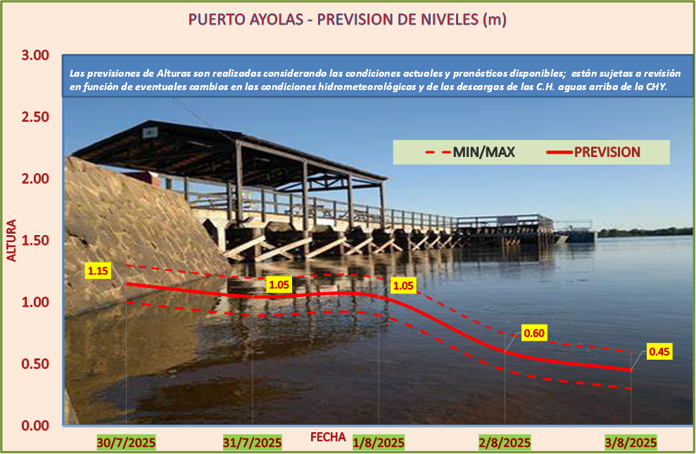 Las previsiones de Alturas son realizadas considerando las condiciones actuales y pronósticos disponibles y están sujetas a revisión en función de eventuales cambios en las condiciones hidrometeorológicas y de las descargas de las C.H. aguas arriba de la CHY.